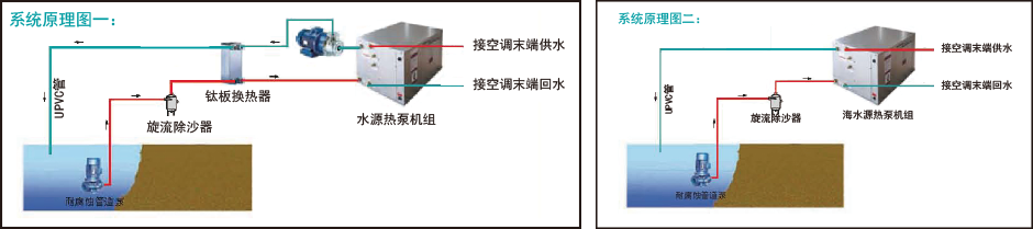 夏季将室内热量排出,利用海水散热;冬季从海水中吸取热量,给室内供暖。